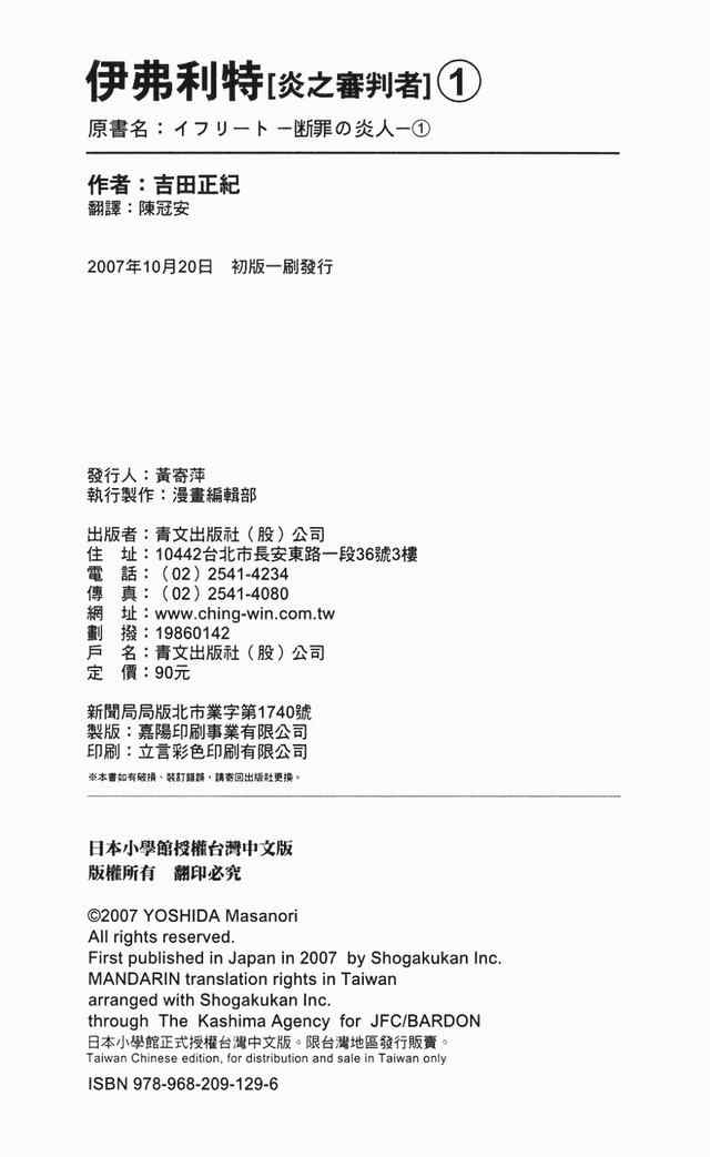 伊弗利特~炎之審判者伊弗利特01卷漫畫來自網友分享和上傳,以便漫畫愛好者研究伊弗利特~炎之審判者伊弗利特01卷漫畫畫法技巧和構圖方式。若喜歡漫畫,請支持購買正版!若侵犯到您的權益,請立即聯繫我們刪除