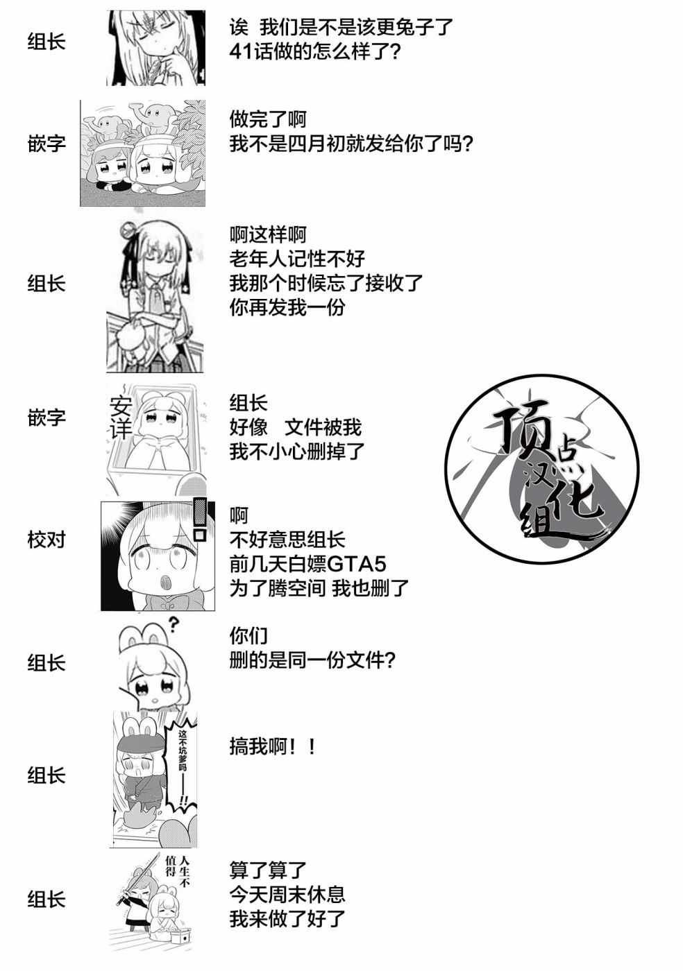 兔子目社畜科041集漫畫來自網友分享和上傳,以便漫畫愛好者研究兔子目社畜科041集漫畫畫法技巧和構圖方式。若喜歡漫畫,請支持購買正版!若侵犯到您的權益,請立即聯繫我們刪除