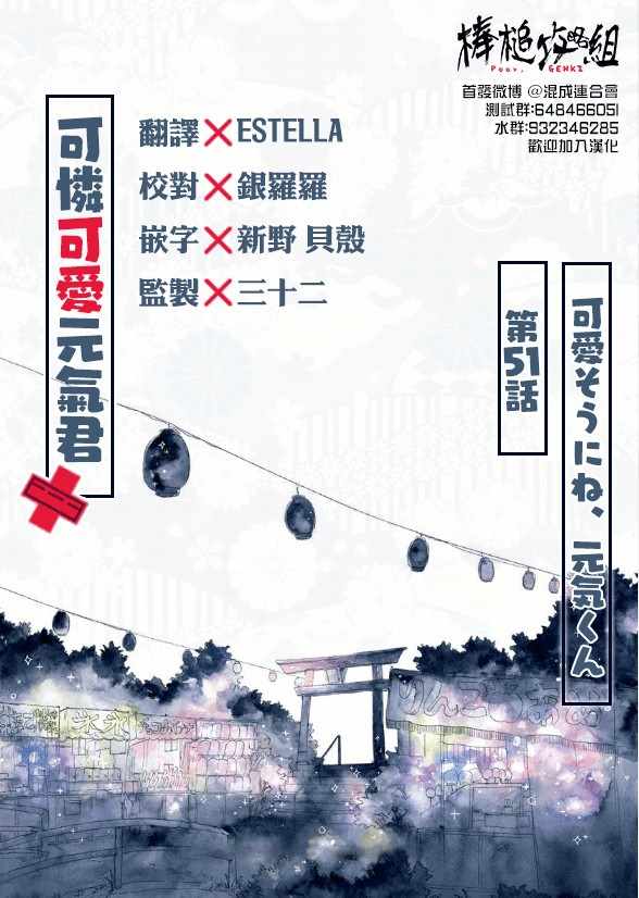 可憐可愛元氣君051集漫畫來自網友分享和上傳,以便漫畫愛好者研究可憐可愛元氣君051集漫畫畫法技巧和構圖方式。若喜歡漫畫,請支持購買正版!若侵犯到您的權益,請立即聯繫我們刪除