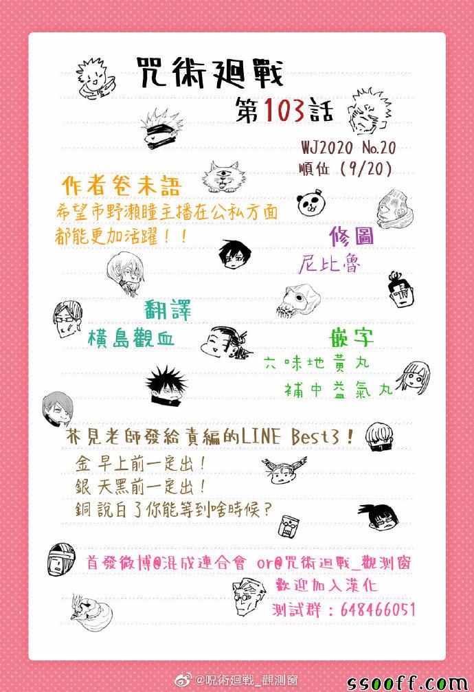 咒術回戰103集漫畫來自網友分享和上傳,以便漫畫愛好者研究咒術回戰103集漫畫畫法技巧和構圖方式。若喜歡漫畫,請支持購買正版!若侵犯到您的權益,請立即聯繫我們刪除