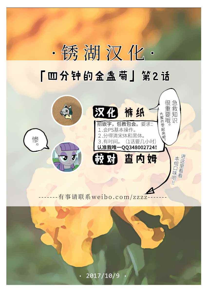 四分鐘的金盞菊002話漫畫來自網友分享和上傳,以便漫畫愛好者研究四分鐘的金盞菊002話漫畫畫法技巧和構圖方式。若喜歡漫畫,請支持購買正版!若侵犯到您的權益,請立即聯繫我們刪除
