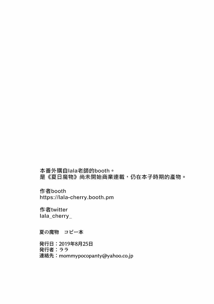 夏日魔物番外01漫畫來自網友分享和上傳,以便漫畫愛好者研究夏日魔物番外01漫畫畫法技巧和構圖方式。若喜歡漫畫,請支持購買正版!若侵犯到您的權益,請立即聯繫我們刪除