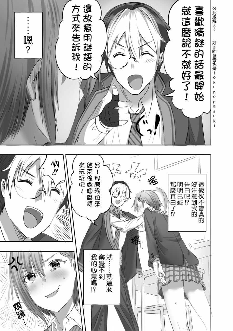 少女愛上猜謎男001集漫畫來自網友分享和上傳,以便漫畫愛好者研究少女愛上猜謎男001集漫畫畫法技巧和構圖方式。若喜歡漫畫,請支持購買正版!若侵犯到您的權益,請立即聯繫我們刪除