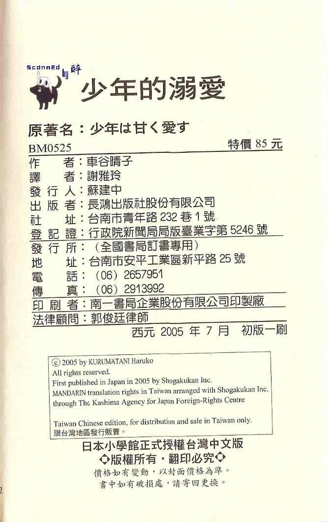 少年的溺愛01卷漫畫來自網友分享和上傳,以便漫畫愛好者研究少年的溺愛01卷漫畫畫法技巧和構圖方式。若喜歡漫畫,請支持購買正版!若侵犯到您的權益,請立即聯繫我們刪除