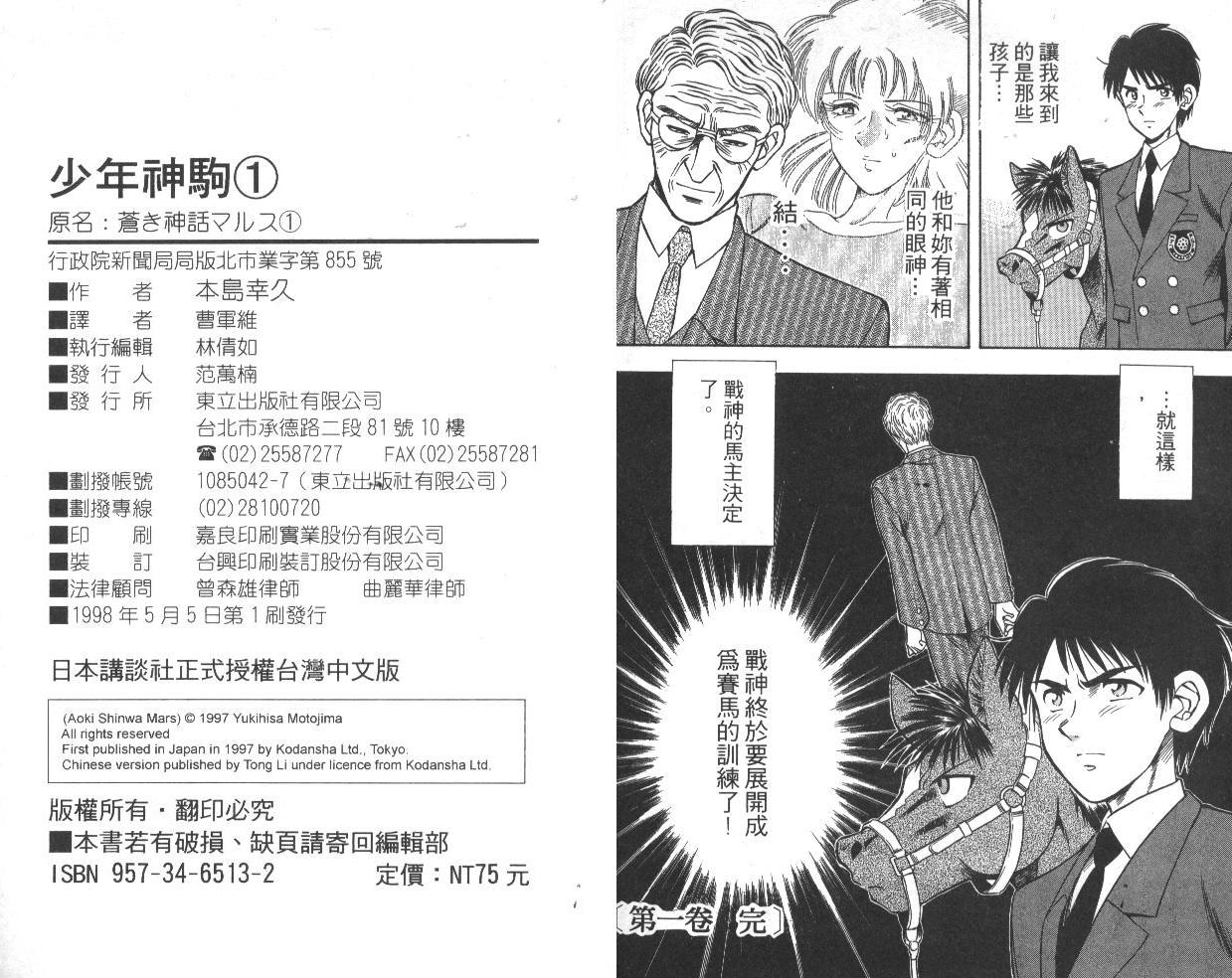少年神駒01卷漫畫來自網友分享和上傳,以便漫畫愛好者研究少年神駒01卷漫畫畫法技巧和構圖方式。若喜歡漫畫,請支持購買正版!若侵犯到您的權益,請立即聯繫我們刪除