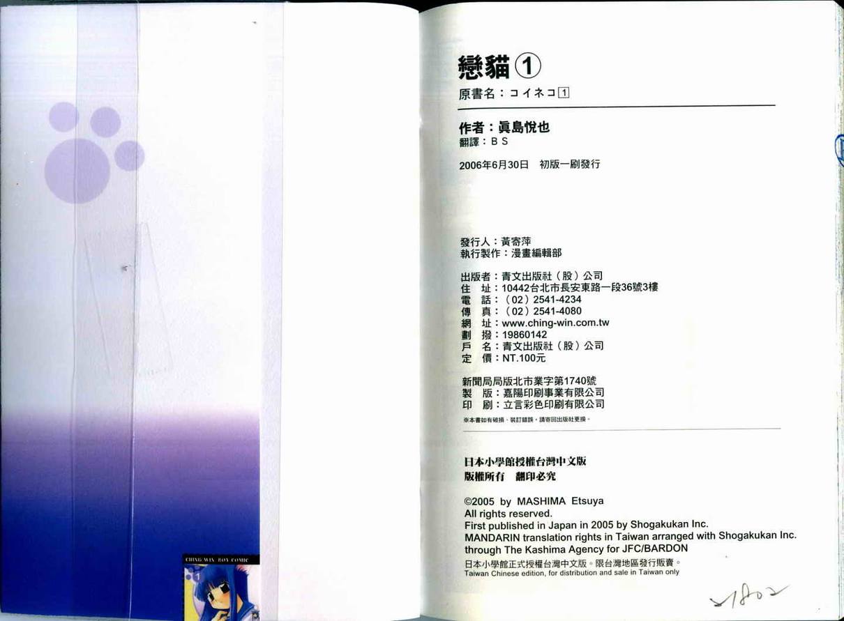 戀貓01卷漫畫來自網友分享和上傳,以便漫畫愛好者研究戀貓01卷漫畫畫法技巧和構圖方式。若喜歡漫畫,請支持購買正版!若侵犯到您的權益,請立即聯繫我們刪除