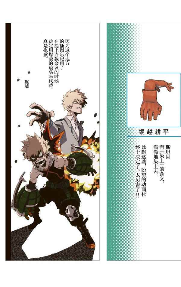 我的英雄學院06卷 附頁漫畫來自網友分享和上傳,以便漫畫愛好者研究我的英雄學院06卷 附頁漫畫畫法技巧和構圖方式。若喜歡漫畫,請支持購買正版!若侵犯到您的權益,請立即聯繫我們刪除