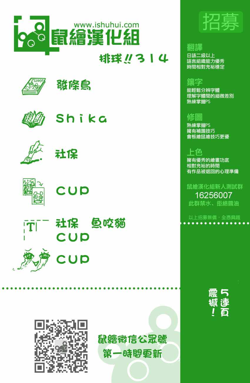 排球少年314話漫畫來自網友分享和上傳,以便漫畫愛好者研究排球少年314話漫畫畫法技巧和構圖方式。若喜歡漫畫,請支持購買正版!若侵犯到您的權益,請立即聯繫我們刪除