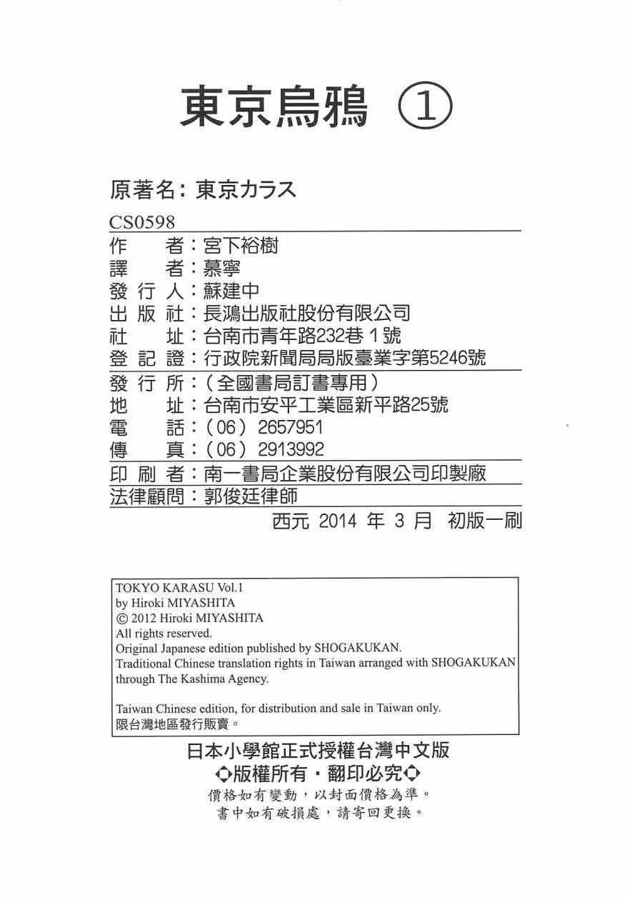東京烏鴉001卷漫畫來自網友分享和上傳,以便漫畫愛好者研究東京烏鴉001卷漫畫畫法技巧和構圖方式。若喜歡漫畫,請支持購買正版!若侵犯到您的權益,請立即聯繫我們刪除