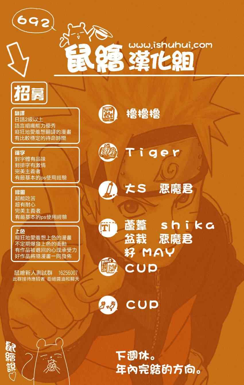 火影忍者外傳692集漫畫來自網友分享和上傳,以便漫畫愛好者研究火影忍者外傳692集漫畫畫法技巧和構圖方式。若喜歡漫畫,請支持購買正版!若侵犯到您的權益,請立即聯繫我們刪除