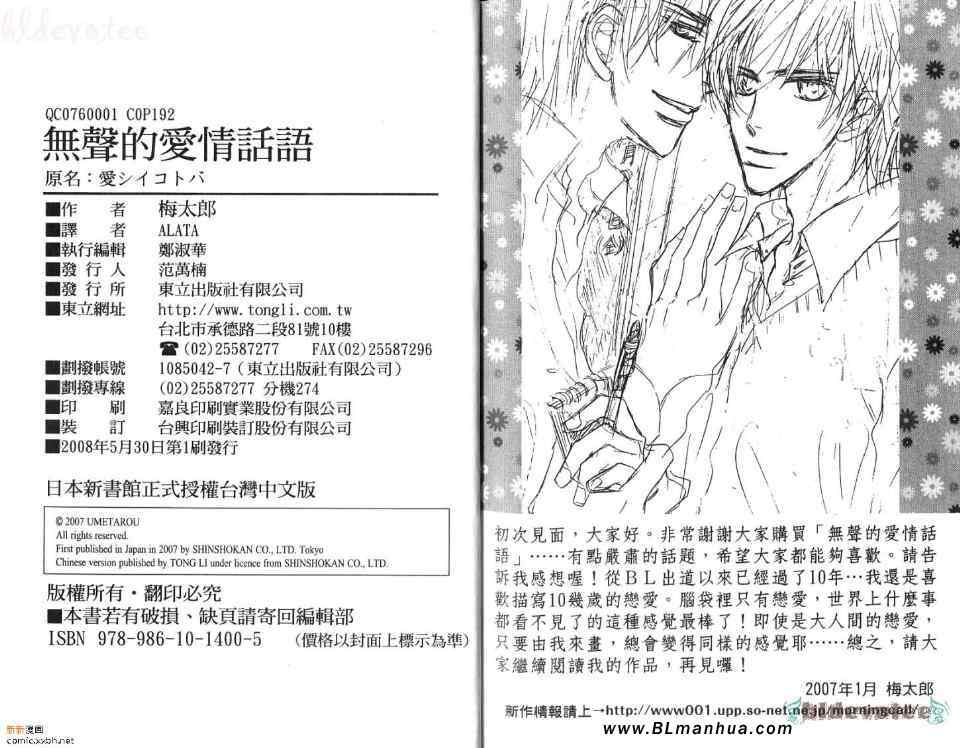 無聲的愛情話語01卷漫畫來自網友分享和上傳,以便漫畫愛好者研究無聲的愛情話語01卷漫畫畫法技巧和構圖方式。若喜歡漫畫,請支持購買正版!若侵犯到您的權益,請立即聯繫我們刪除