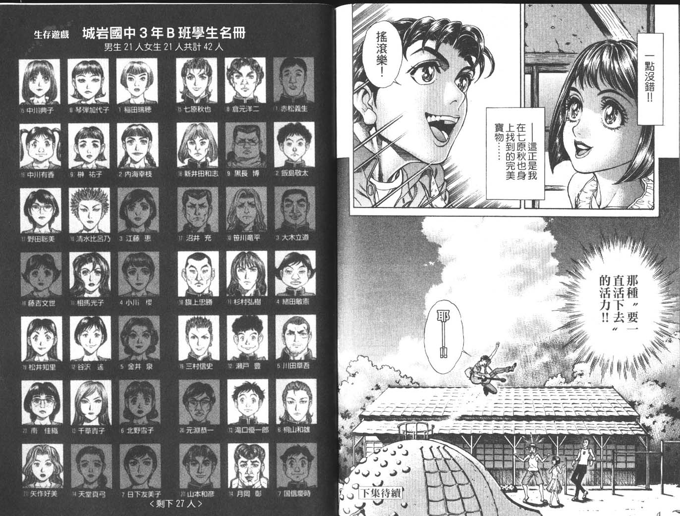 生存遊戲(大逃殺)生存游戲02卷漫畫來自網友分享和上傳,以便漫畫愛好者研究生存遊戲(大逃殺)生存游戲02卷漫畫畫法技巧和構圖方式。若喜歡漫畫,請支持購買正版!若侵犯到您的權益,請立即聯繫我們刪除