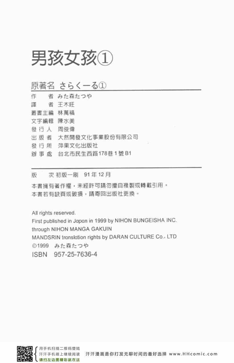 男孩女孩01卷漫畫來自網友分享和上傳,以便漫畫愛好者研究男孩女孩01卷漫畫畫法技巧和構圖方式。若喜歡漫畫,請支持購買正版!若侵犯到您的權益,請立即聯繫我們刪除