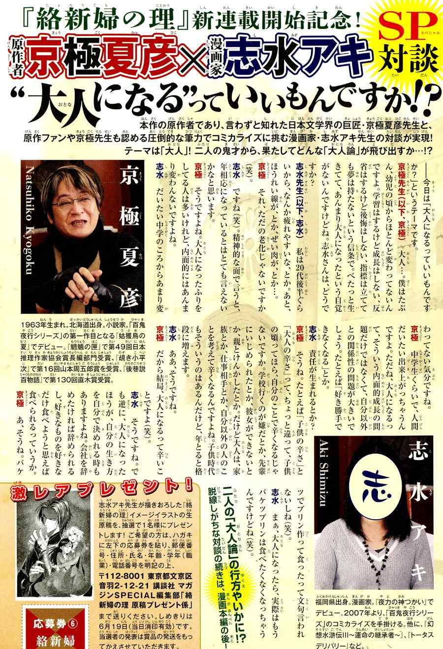 絡新婦之理001話漫畫來自網友分享和上傳,以便漫畫愛好者研究絡新婦之理001話漫畫畫法技巧和構圖方式。若喜歡漫畫,請支持購買正版!若侵犯到您的權益,請立即聯繫我們刪除