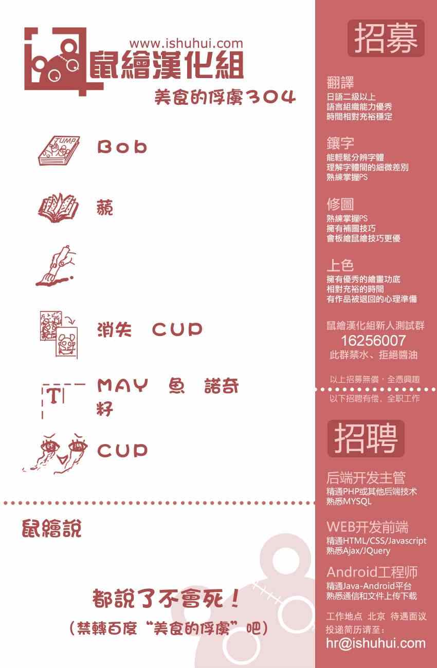 美食的俘虜304集漫畫來自網友分享和上傳,以便漫畫愛好者研究美食的俘虜304集漫畫畫法技巧和構圖方式。若喜歡漫畫,請支持購買正版!若侵犯到您的權益,請立即聯繫我們刪除
