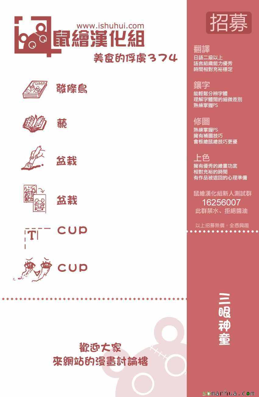 美食的俘虜374話漫畫來自網友分享和上傳,以便漫畫愛好者研究美食的俘虜374話漫畫畫法技巧和構圖方式。若喜歡漫畫,請支持購買正版!若侵犯到您的權益,請立即聯繫我們刪除