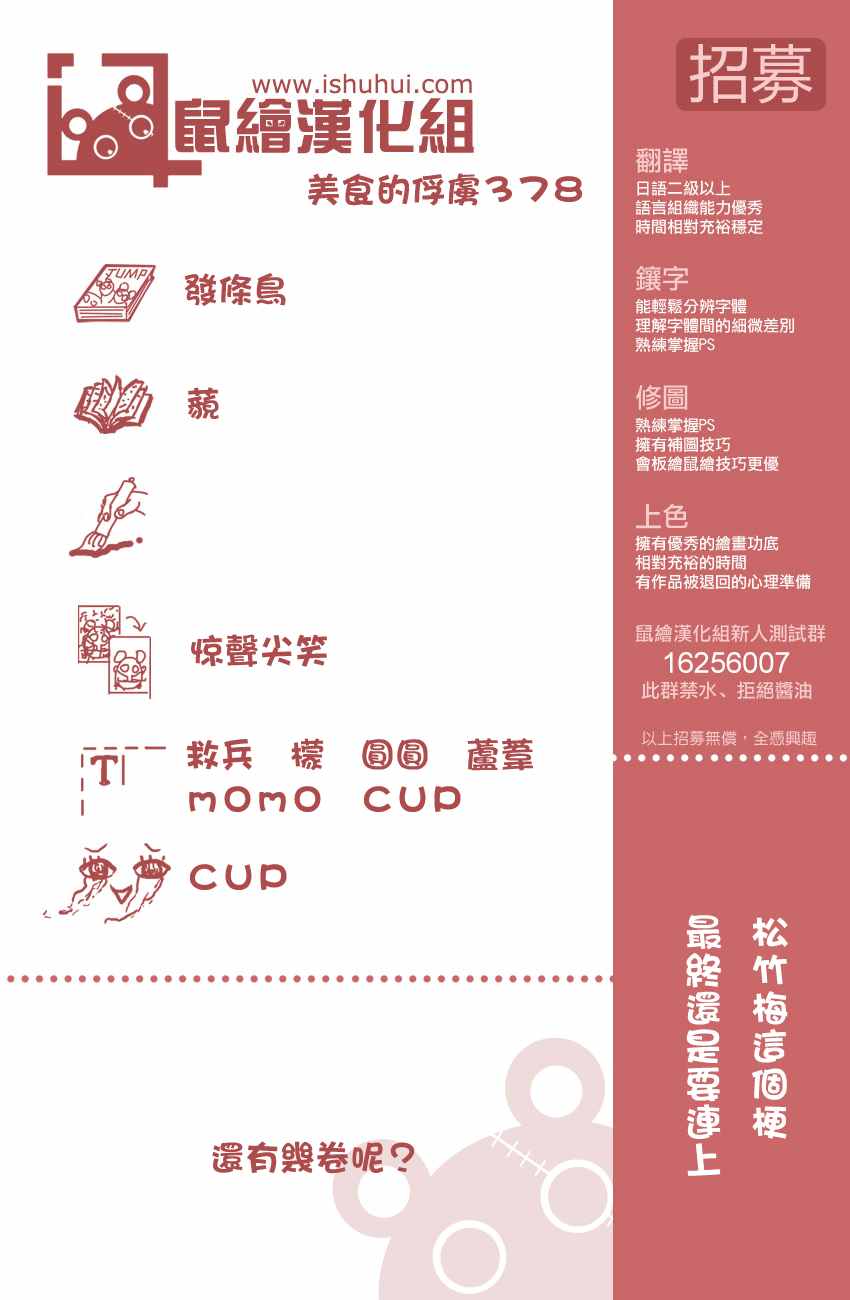 美食的俘虜378話漫畫來自網友分享和上傳,以便漫畫愛好者研究美食的俘虜378話漫畫畫法技巧和構圖方式。若喜歡漫畫,請支持購買正版!若侵犯到您的權益,請立即聯繫我們刪除