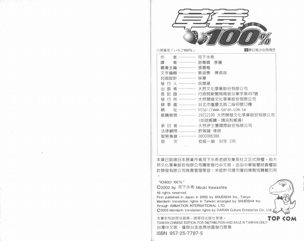 草莓100%02卷漫畫來自網友分享和上傳,以便漫畫愛好者研究草莓100%02卷漫畫畫法技巧和構圖方式。若喜歡漫畫,請支持購買正版!若侵犯到您的權益,請立即聯繫我們刪除