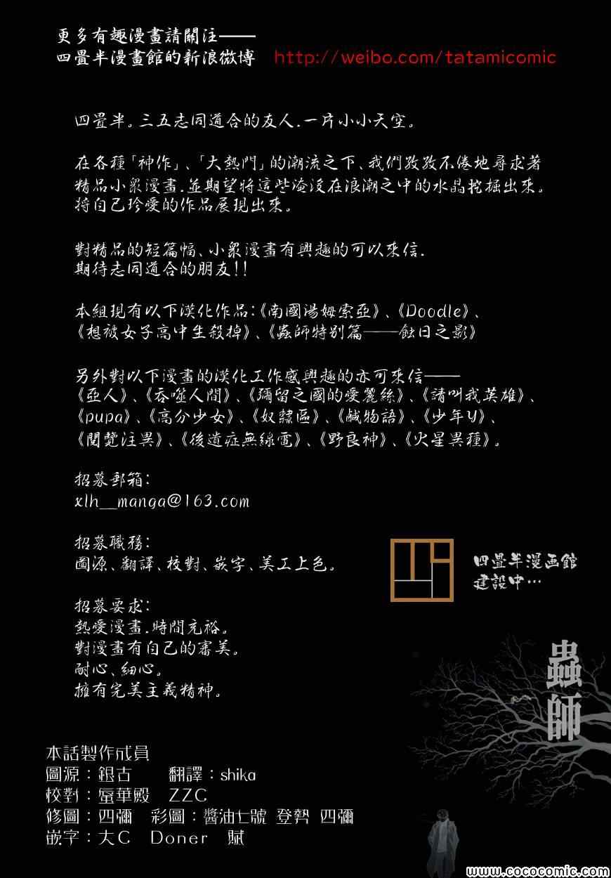 蟲師特別篇:蝕日之影 前篇漫畫來自網友分享和上傳,以便漫畫愛好者研究蟲師特別篇:蝕日之影 前篇漫畫畫法技巧和構圖方式。若喜歡漫畫,請支持購買正版!若侵犯到您的權益,請立即聯繫我們刪除