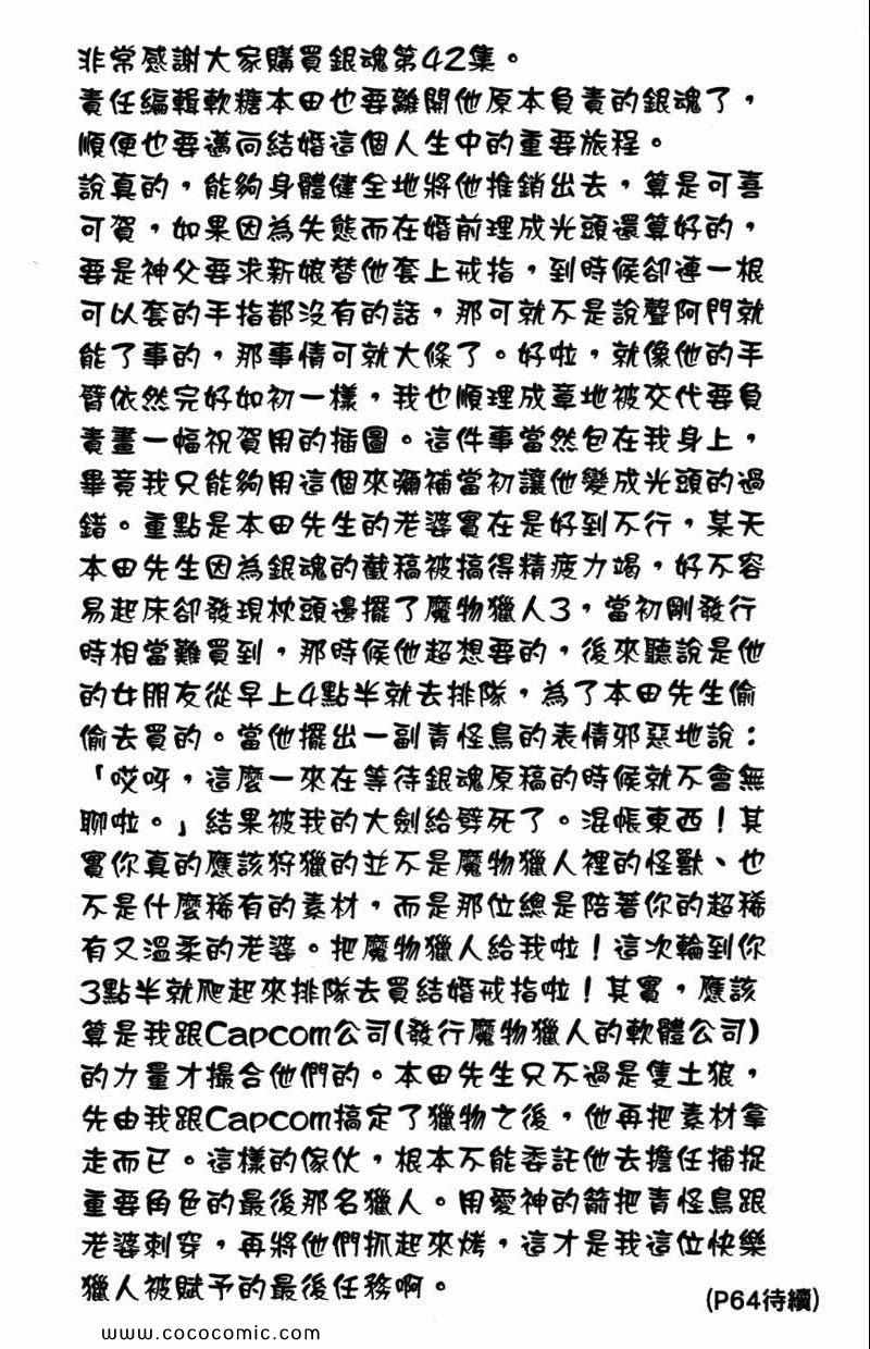銀魂42卷漫畫來自網友分享和上傳,以便漫畫愛好者研究銀魂42卷漫畫畫法技巧和構圖方式。若喜歡漫畫,請支持購買正版!若侵犯到您的權益,請立即聯繫我們刪除