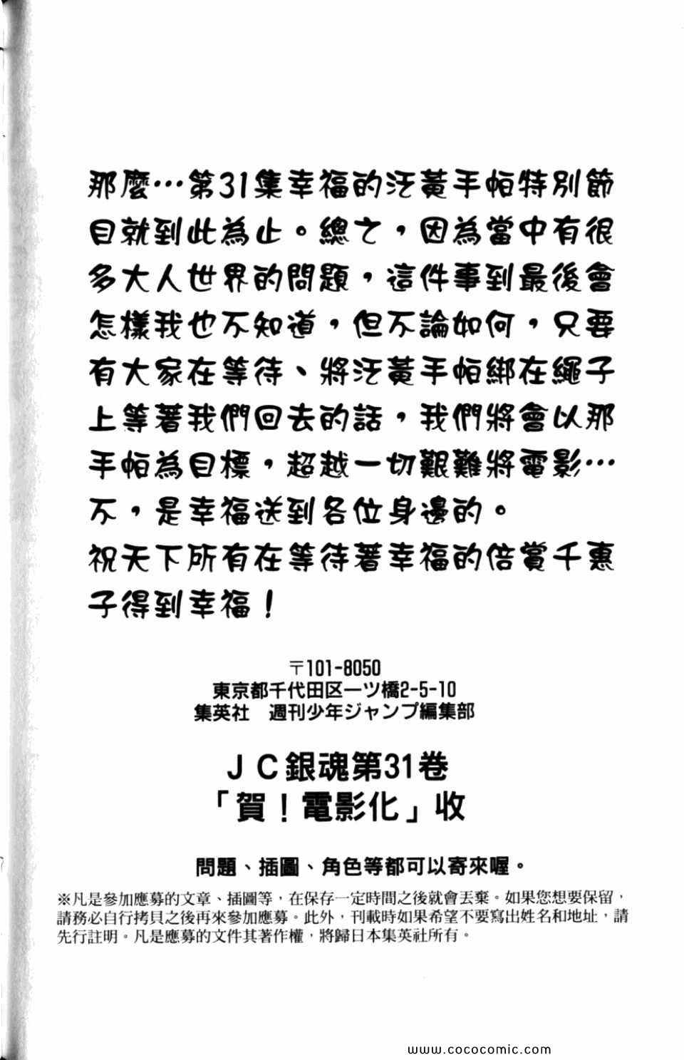 銀魂31卷漫畫來自網友分享和上傳,以便漫畫愛好者研究銀魂31卷漫畫畫法技巧和構圖方式。若喜歡漫畫,請支持購買正版!若侵犯到您的權益,請立即聯繫我們刪除