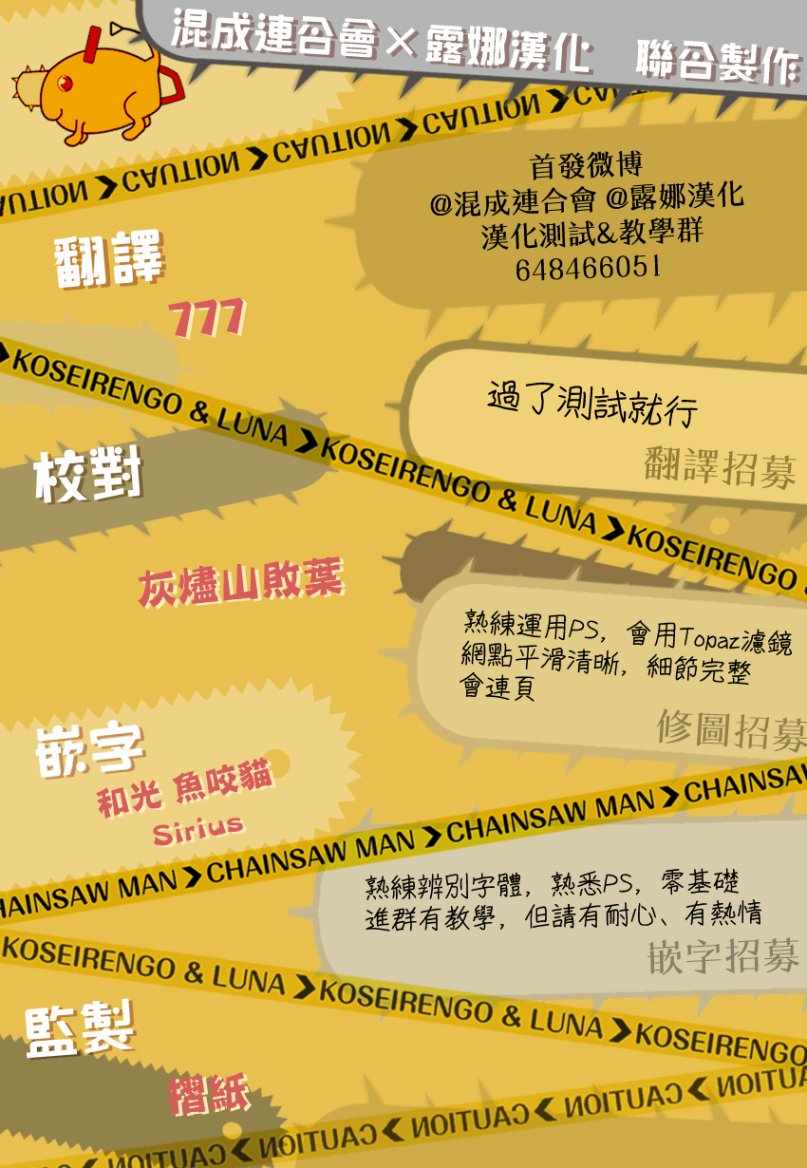 電鋸人007話漫畫來自網友分享和上傳,以便漫畫愛好者研究電鋸人007話漫畫畫法技巧和構圖方式。若喜歡漫畫,請支持購買正版!若侵犯到您的權益,請立即聯繫我們刪除