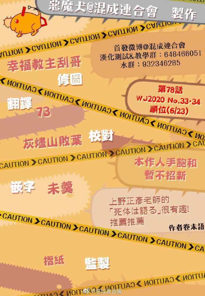 電鋸人078集漫畫來自網友分享和上傳,以便漫畫愛好者研究電鋸人078集漫畫畫法技巧和構圖方式。若喜歡漫畫,請支持購買正版!若侵犯到您的權益,請立即聯繫我們刪除