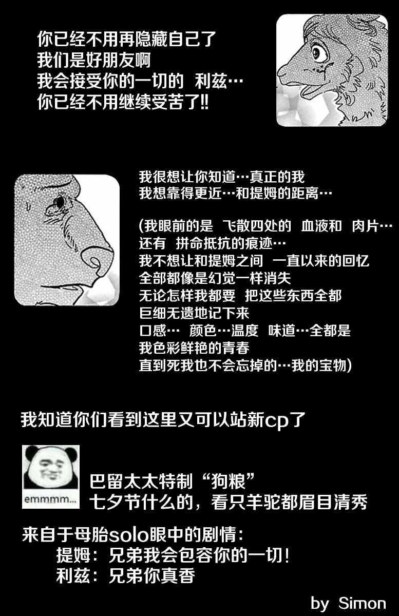 BEASTARS077話漫畫來自網友分享和上傳,以便漫畫愛好者研究BEASTARS077話漫畫畫法技巧和構圖方式。若喜歡漫畫,請支持購買正版!若侵犯到您的權益,請立即聯繫我們刪除