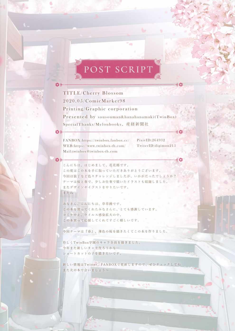 (C98)CherryBlossomCherryBlossom 001集漫畫來自網友分享和上傳,以便漫畫愛好者研究(C98)CherryBlossomCherryBlossom 001集漫畫畫法技巧和構圖方式。若喜歡漫畫,請支持購買正版!若侵犯到您的權益,請立即聯繫我們刪除
