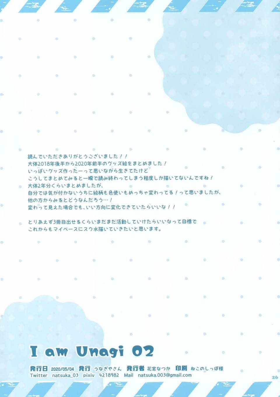 (C98)I am Unagi 02畫集漫畫來自網友分享和上傳,以便漫畫愛好者研究(C98)I am Unagi 02畫集漫畫畫法技巧和構圖方式。若喜歡漫畫,請支持購買正版!若侵犯到您的權益,請立即聯繫我們刪除
