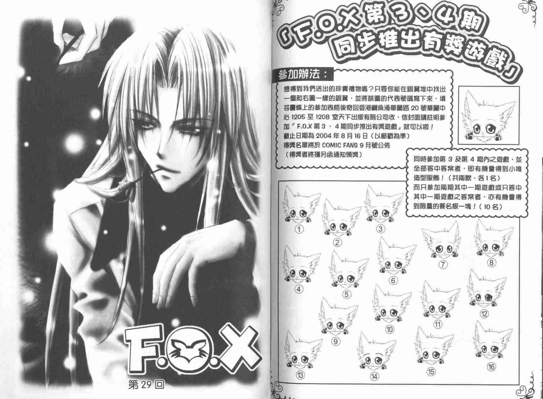 F.O.X(完)f.o.x03卷漫畫來自網友分享和上傳,以便漫畫愛好者研究F.O.X(完)f.o.x03卷漫畫畫法技巧和構圖方式。若喜歡漫畫,請支持購買正版!若侵犯到您的權益,請立即聯繫我們刪除