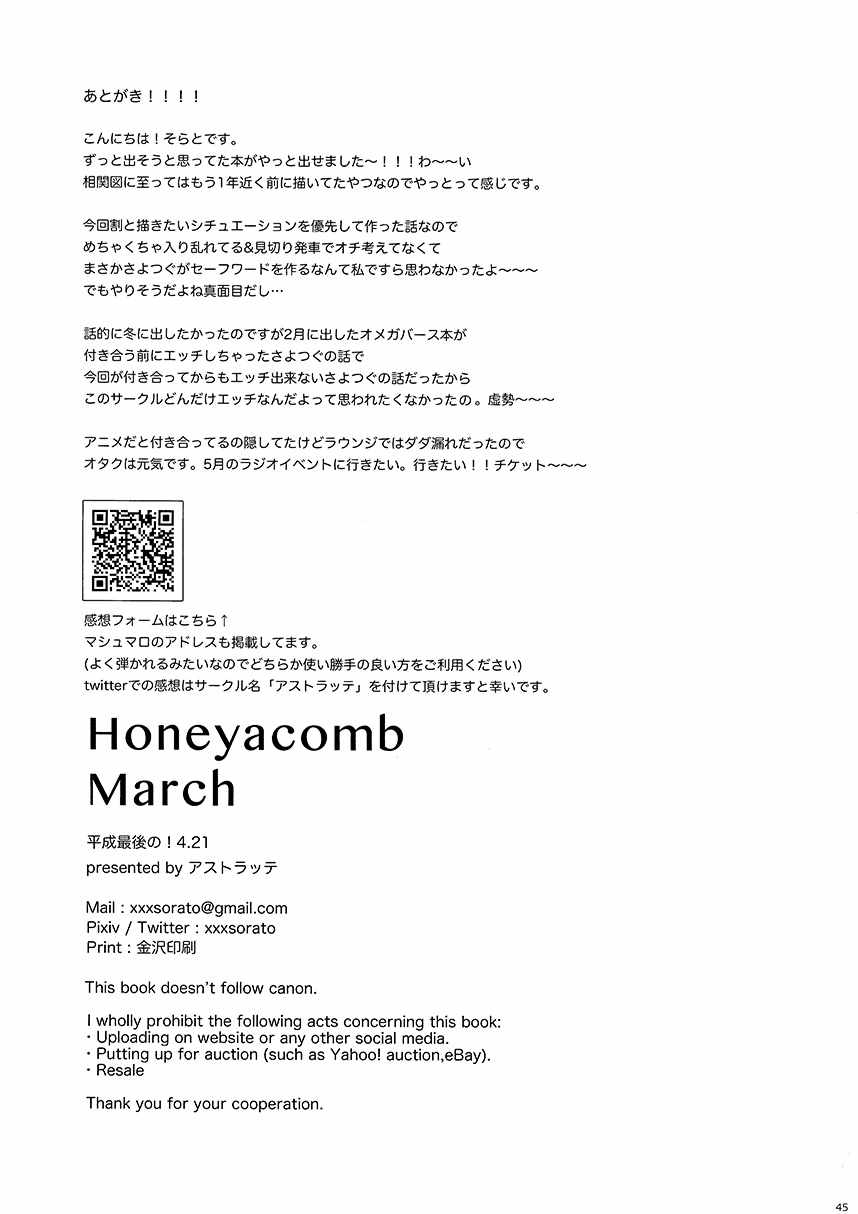 Honeycomb March短篇漫畫來自網友分享和上傳,以便漫畫愛好者研究Honeycomb March短篇漫畫畫法技巧和構圖方式。若喜歡漫畫,請支持購買正版!若侵犯到您的權益,請立即聯繫我們刪除