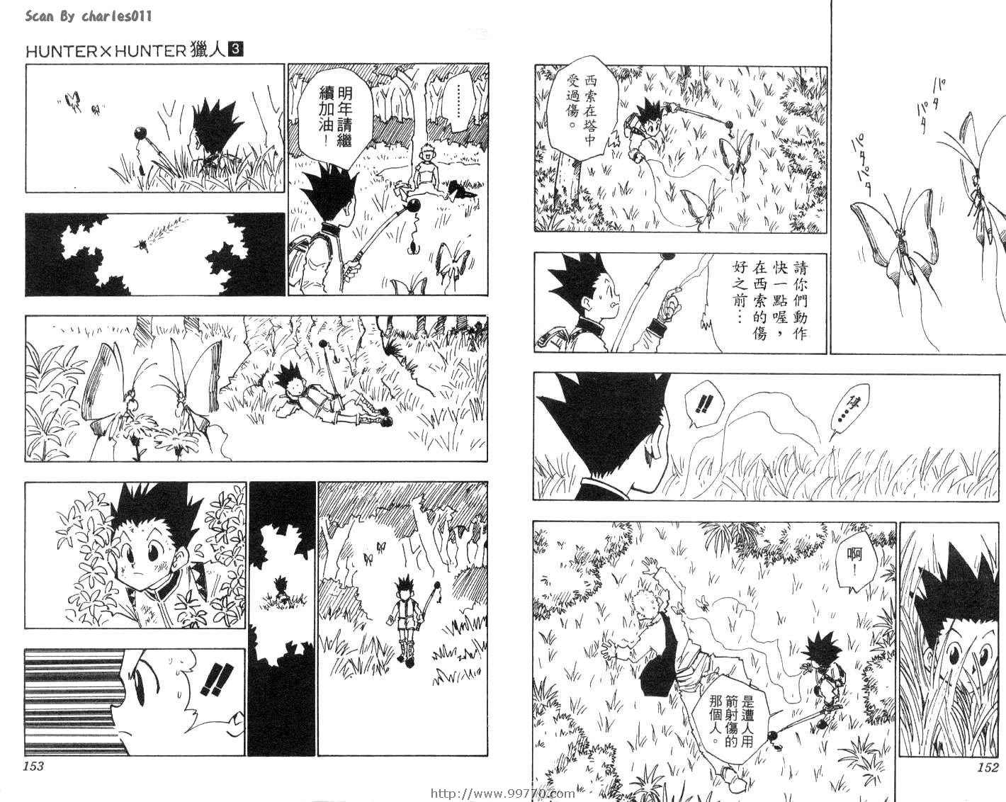 HunterXHunter 獵人獵人03卷漫畫來自網友分享和上傳,以便漫畫愛好者研究HunterXHunter 獵人獵人03卷漫畫畫法技巧和構圖方式。若喜歡漫畫,請支持購買正版!若侵犯到您的權益,請立即聯繫我們刪除