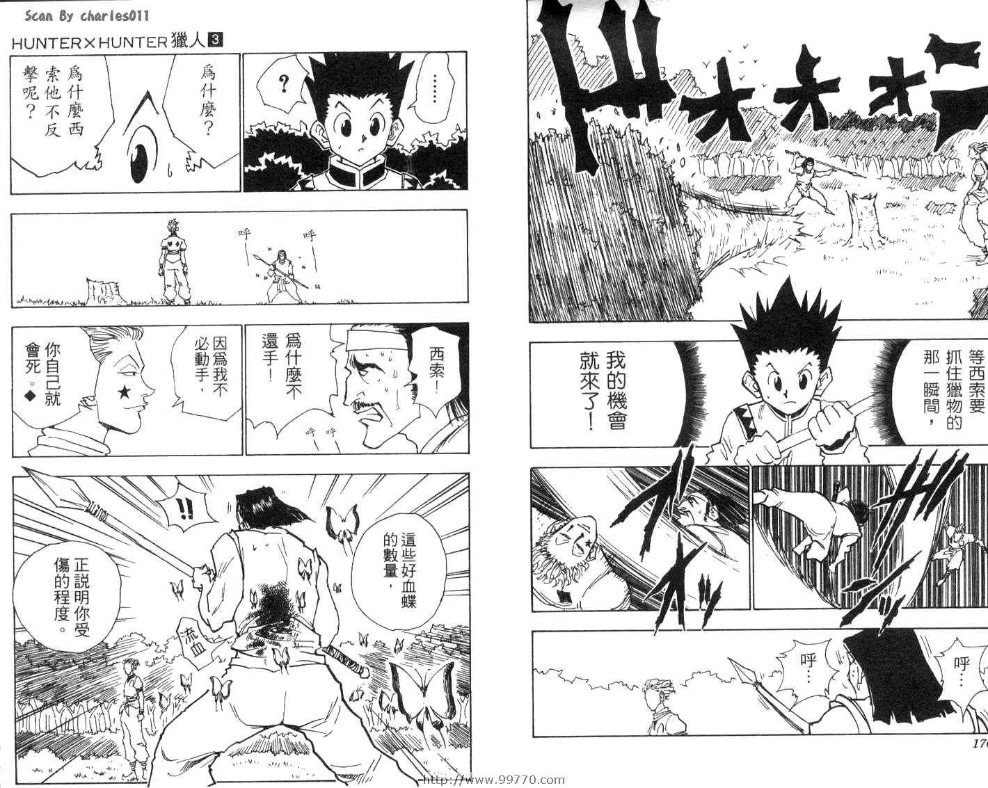 HunterXHunter 獵人獵人03卷漫畫來自網友分享和上傳,以便漫畫愛好者研究HunterXHunter 獵人獵人03卷漫畫畫法技巧和構圖方式。若喜歡漫畫,請支持購買正版!若侵犯到您的權益,請立即聯繫我們刪除