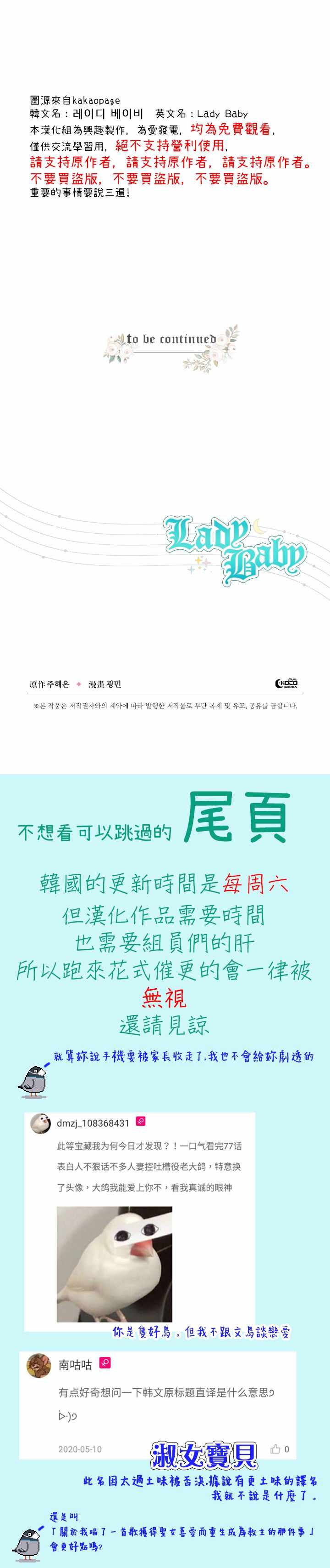 Lady Baby078集漫畫來自網友分享和上傳,以便漫畫愛好者研究Lady Baby078集漫畫畫法技巧和構圖方式。若喜歡漫畫,請支持購買正版!若侵犯到您的權益,請立即聯繫我們刪除