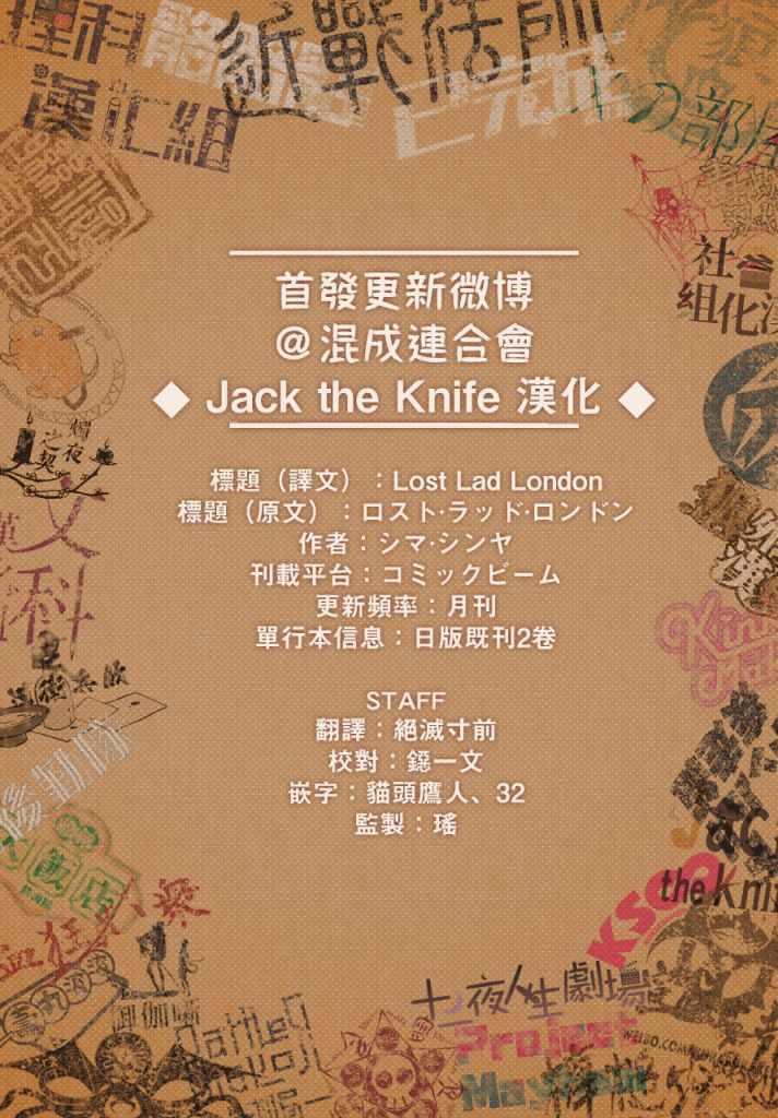 Lost Lad London001集漫畫來自網友分享和上傳,以便漫畫愛好者研究Lost Lad London001集漫畫畫法技巧和構圖方式。若喜歡漫畫,請支持購買正版!若侵犯到您的權益,請立即聯繫我們刪除