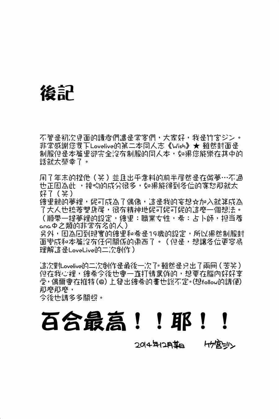 LoveLivewish漫畫來自網友分享和上傳,以便漫畫愛好者研究LoveLivewish漫畫畫法技巧和構圖方式。若喜歡漫畫,請支持購買正版!若侵犯到您的權益,請立即聯繫我們刪除
