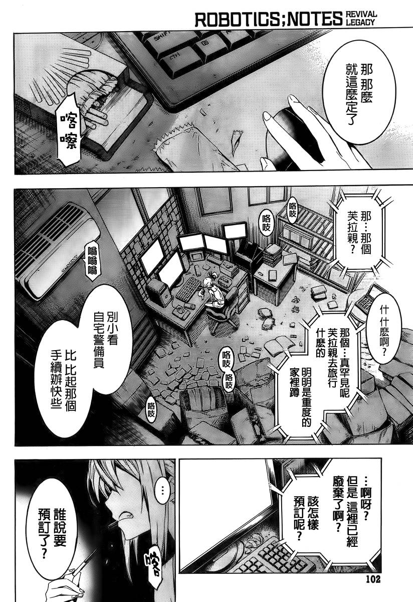 Robotics;Notes Revival LegacyLegacy 002集漫畫來自網友分享和上傳,以便漫畫愛好者研究Robotics;Notes Revival LegacyLegacy 002集漫畫畫法技巧和構圖方式。若喜歡漫畫,請支持購買正版!若侵犯到您的權益,請立即聯繫我們刪除