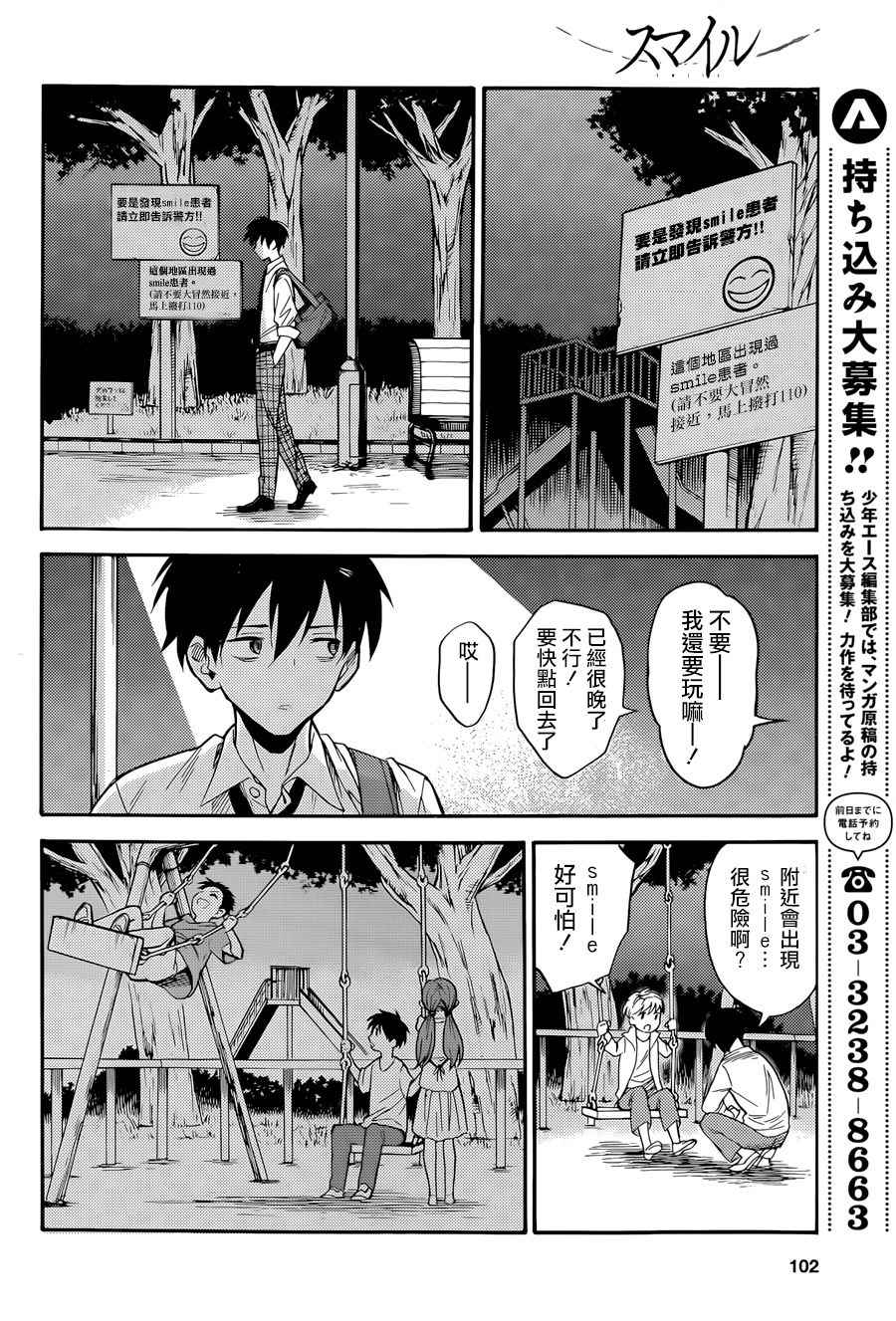 Smile003話漫畫來自網友分享和上傳,以便漫畫愛好者研究Smile003話漫畫畫法技巧和構圖方式。若喜歡漫畫,請支持購買正版!若侵犯到您的權益,請立即聯繫我們刪除